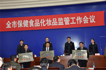 2013年3月13日,由濟南市食品藥品監督管理局主辦的“濟南市保健食品化妝品監管工作會(huì )議”在龍奧大廈隆重召開(kāi),來(lái)自濟南市及各縣(市)區監管系統一線(xiàn)的執法工作人員參加了此次會(huì )議。會(huì )議由濟南市食品藥品監督管理局?;庩悘V銀處長(cháng)主持,濟南市食品藥品監督管理局衣光軍副局長(cháng)、?;幎艜詡タ崎L(cháng)、?;幹煦y和科長(cháng)出席會(huì )議,我公司和山東天地健生物工程有限公司、山東福瑞達生物工程有限公司參加了此次會(huì )議,并上臺領(lǐng)取了“濟南市保健食品化妝品監管實(shí)踐基地”的標牌。