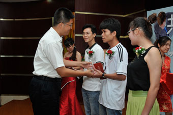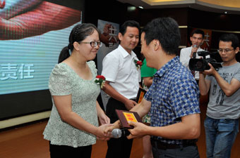 董事長(cháng)湯傳忠先生為新任的管理人員頒發(fā)任命書(shū)                             發(fā)展部經(jīng)理馮小龍先生為獲獎人員頒獎