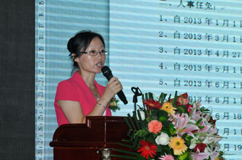 副總經(jīng)理鄭朝霞女士作《2013年上半年工作報告》               人力資源于鳳仙經(jīng)理宣讀《2013機構調整及人事任免決定》