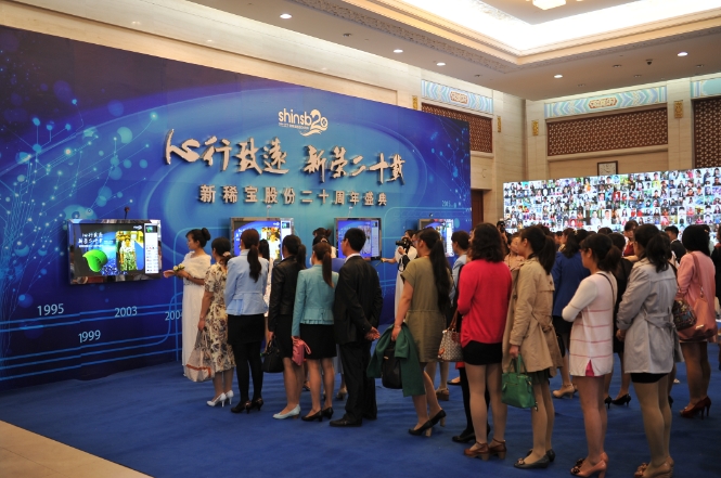 2015年5月9日,是新稀寶股份二十周歲生日,這一天,新稀寶股份全體員工共計600余人,齊聚山東濟南南郊賓館為公司慶生,公司董事長(cháng)湯傳忠先生、常務(wù)副總杜征國先生、副總鄭朝霞女士等全體高層盛裝出席。