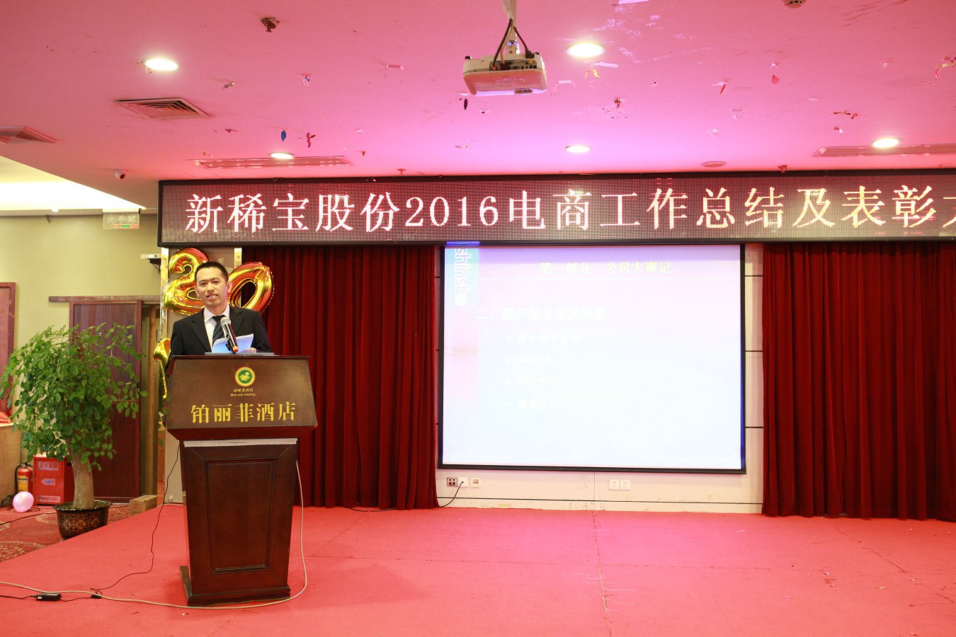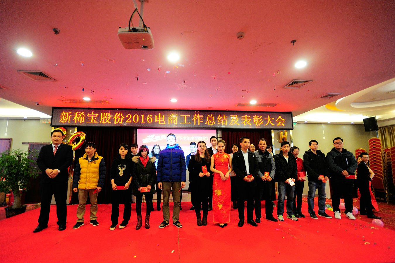 綠城南寧金雞賀歲,電商商網(wǎng)揚帆起航。2017年1月13日,新稀寶股份2016年度電商及商網(wǎng)工作總結暨表彰大會(huì )在廣西南寧鉑麗菲酒店正式召開(kāi)。電商事業(yè)部一部、商網(wǎng)部全體精英共計80余人參加了此次盛會(huì ),新稀寶股份有限公司副總經(jīng)理-鄭朝霞女士、高層經(jīng)理輪值主席-張秋峰先生、生產(chǎn)總監-王猛先生、電商事業(yè)部副經(jīng)理-李建東先生、南寧分公司副經(jīng)理-陳文歡先生均出席了本次會(huì )議。