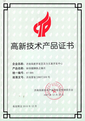 高新技術(shù)產(chǎn)品證書—鋅硒寶