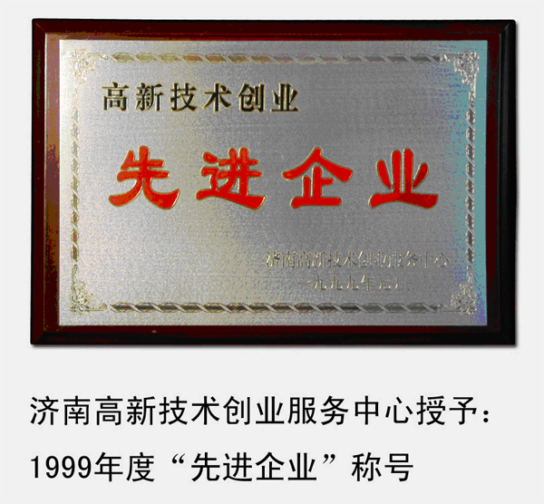 1999年,被濟(jì)南高新技術(shù)創(chuàng)業(yè)服務(wù)中心授予“高新技術(shù)創(chuàng)業(yè)先進(jìn)企業(yè)”