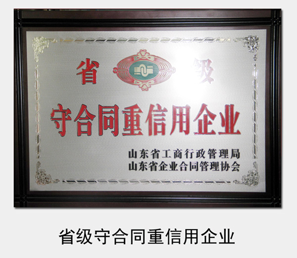 2005年至今,連續(xù)被山東省工商局認定為省級“守合同重信用企業(yè)”
