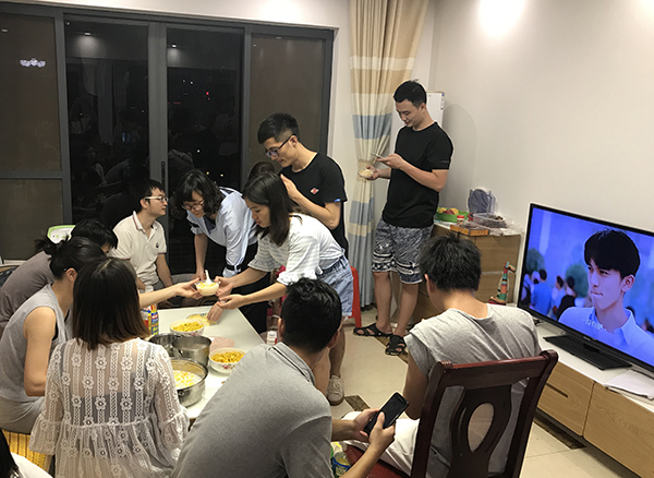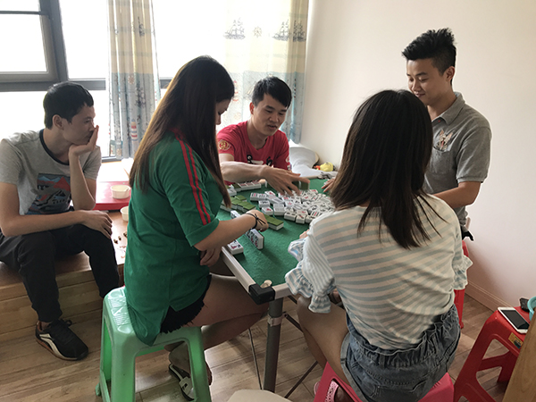 相較于廚房內(nèi)的熱火朝天,客廳里卻是另一番景象。大家就像是在自己家里一樣,放松地坐在沙發(fā)上聊天、看電視、吃水果,還有的同事湊成桌打麻將,偶爾聽廚房 里大廚們的“差遣”打打下手。相比于工作時(shí)間內(nèi)的合作,這個(gè)時(shí)候的大家更像是一家人,相處更放松、更愜意。多了工作以外的接觸和了解,相信大家以后在工作 中溝通更加順利、合作更加親密無間。