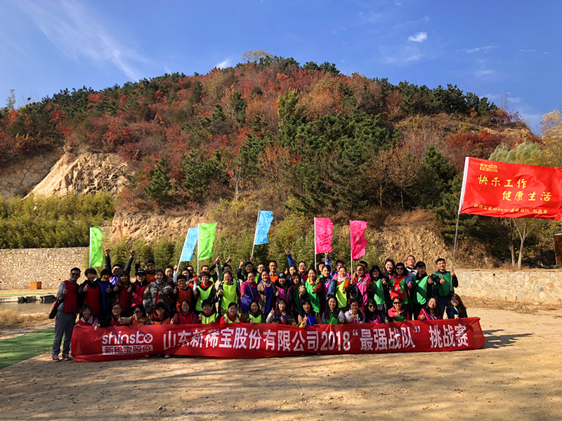 秋日的九如山如霞似火,層林浸染。為豐富員工業(yè)余文化生活,增進(jìn)員工的感情交流,11月3日,山東新稀寶股份有限公司特組織后勤職能全體員工前往九如山瀑布群風(fēng)景區(qū)開展了為期一天的團(tuán)隊(duì)挑戰(zhàn)賽活動。此次活動圍繞“2018最強(qiáng)戰(zhàn)隊(duì)”這一主題展開,以同事關(guān)系為紐帶,以對生活的熱情為契機(jī),激勵自我,釋放潛能,旨在鍛煉員工的堅(jiān)強(qiáng)意志,增強(qiáng)團(tuán)隊(duì)凝聚力和向心力,打造一支勇于挑戰(zhàn)、敢于擔(dān)當(dāng)?shù)男孪毢笄趫F(tuán)隊(duì)。