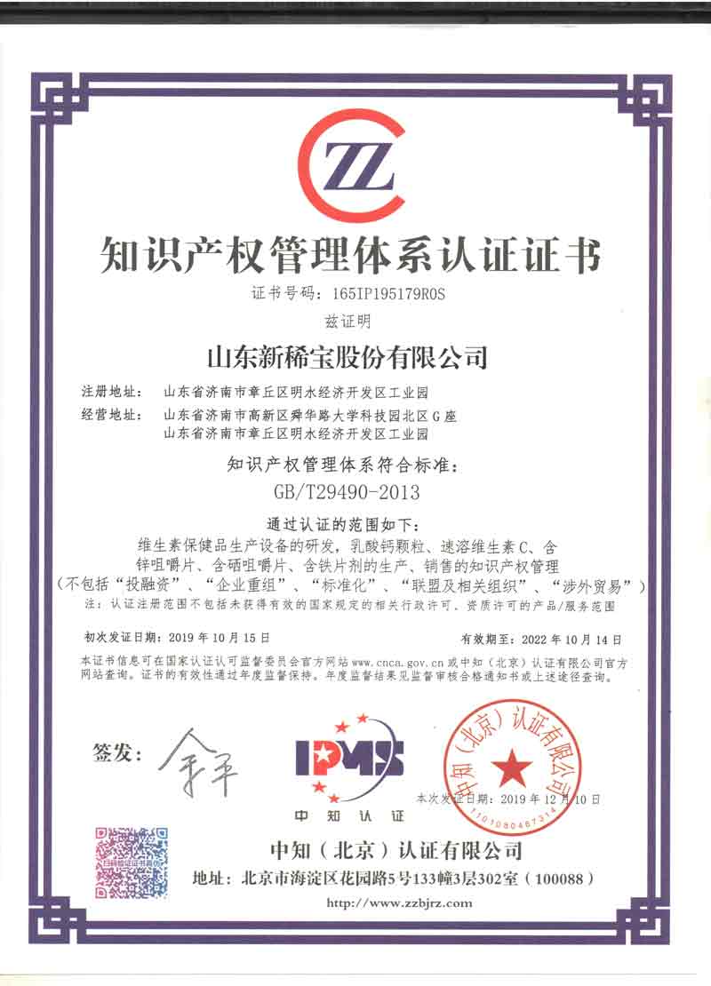 知識產(chǎn)權(quán)管理體系認(rèn)證證書